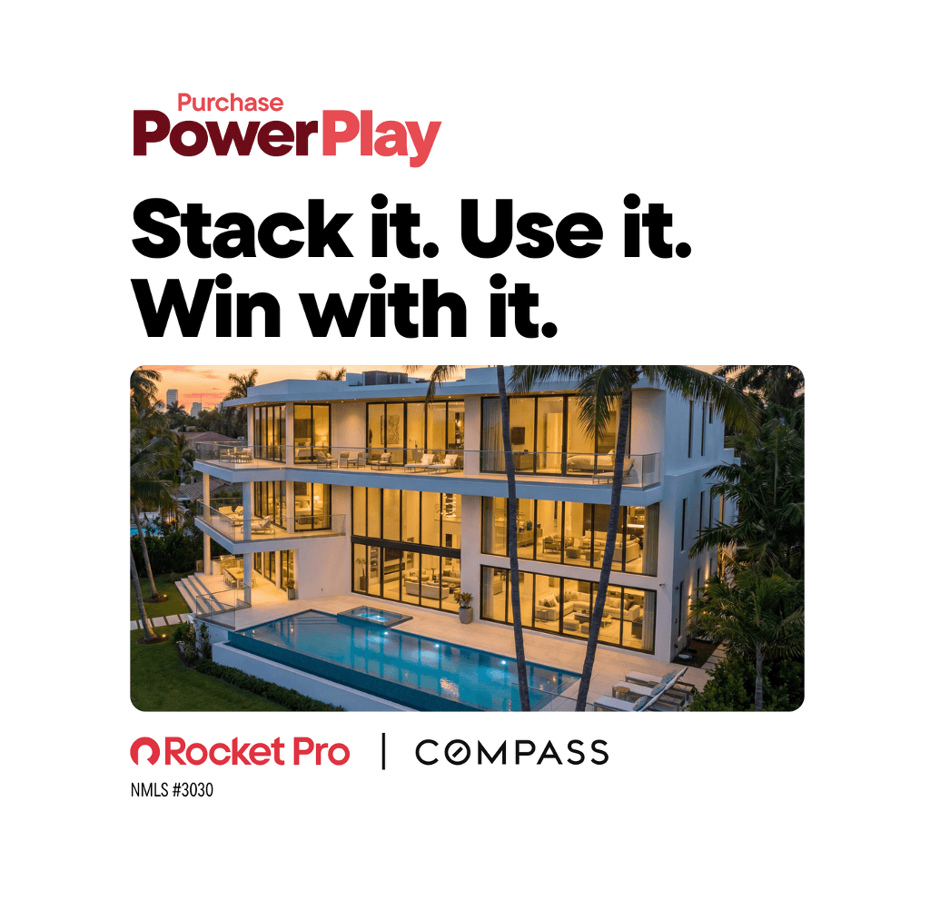 The 100 basis point stack applies to eligible purchase transactions when working with qualifying Compass agents. Brokers should connect with their Rocket Pro Account Executive to confirm eligibility and specific transaction requirements.