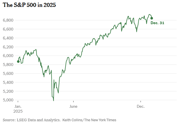 Though the path was volatile and uneven, U.S. stocks finished 2025 broadly in line with expectations. The S&P 500 rose 16.4%, largely driven by enthusiasm around artificial intelligence, with massive investments in data centers, software, and semiconductors fueling gains in a small group of technology leaders.