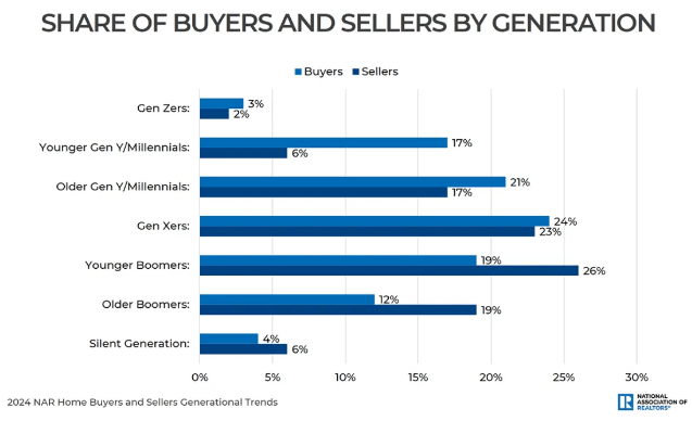 The National Association of REALTORS® has released a home buyers and sellers report since 2013.The graphic below shows Gen Xers as the most active generation in the home buying and selling process, and Baby Boomers the most likely to sell their home.